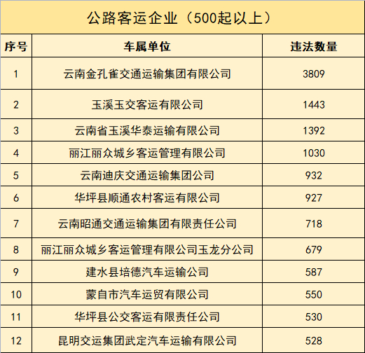 从交通违法数量来看,2月份,公路客运交通违法较为突出,500起以上的企业有12家,分别是: