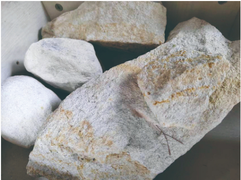 江氏所用的瓷矿石,就精选出产于青草坡的优质瓷矿,当年的碗厂人称为“碗沙矿”(俗称:白泡石)。几百年前,江家的工人就是用人力一块一块开凿矿石。天然矿石做的上等瓷土,烧出的细白瓷,胎薄,纯净无杂质。
