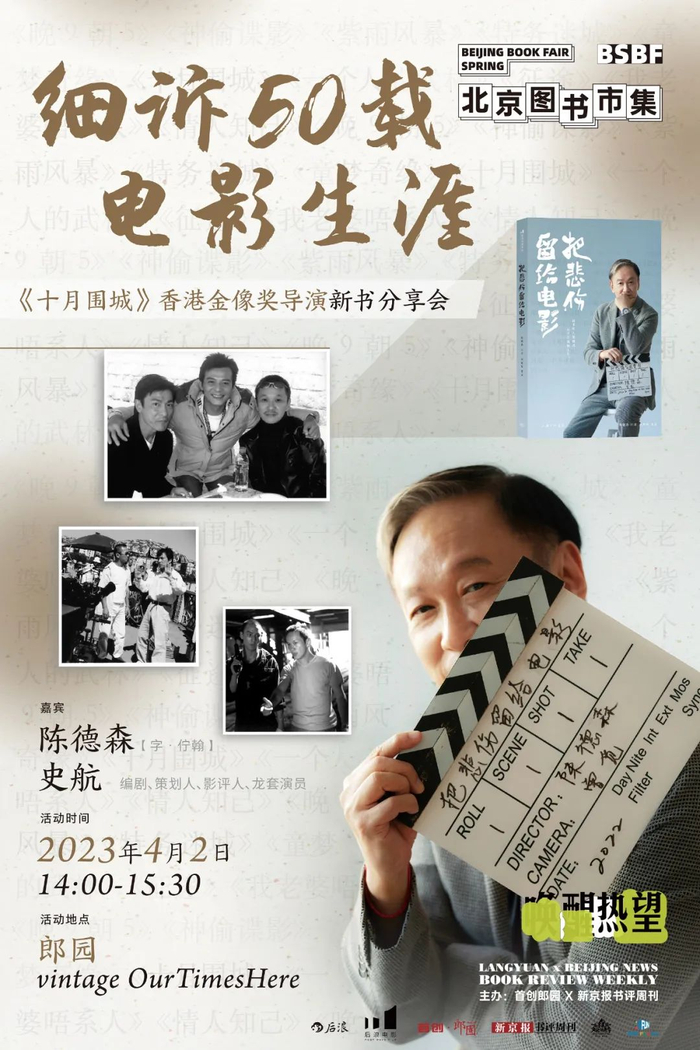 如果你对香港电影、对片场故事感兴趣,想与嘉宾现场交流,欢迎来到4月2日北京图书市集·春季场活动现场。陈德森将带着自己的新书,对话史航老师,细诉人生五十载,和影迷们一同分享关于港片的黄金时代,从小助理到大导演的蜕变之路,以及不畏挑战的逐梦人生之旅。