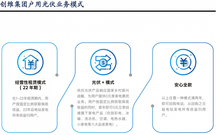 在资金方面,创维与华夏金租构建了“光伏+惠民金融+数字科技”的商业模式。公司作为电站建设方和后期运维方,联合资金提供方华夏金租,为农户提供电站融资租赁或经营租赁服务。