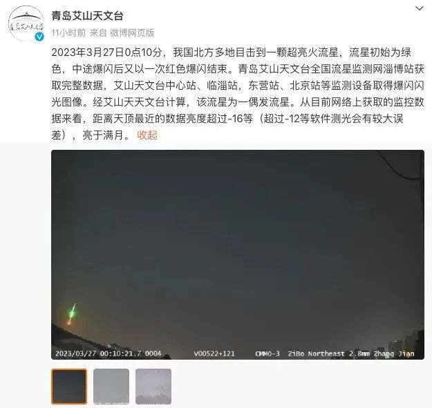 3月27日凌晨,北京、河北、内蒙古赤峰等多地多名网友、市民目击“火流星”。