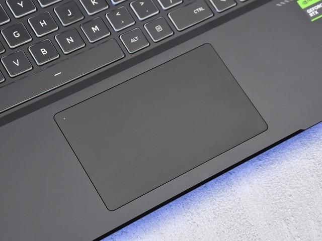 触控板位于键盘下方中间位置,表面是类AG玻璃,非常顺滑。位置稍显尴尬,打字的时候右手会压在触控板上。该触控板支持快速开关功能,双击左上角可在开启/关闭触控板之间切换。