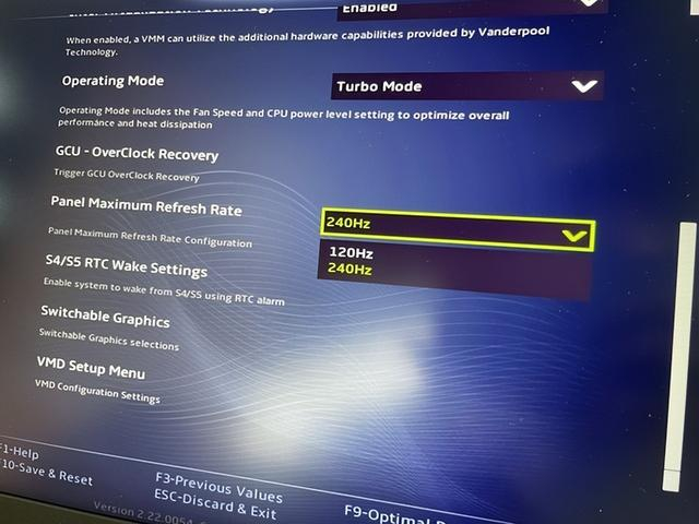 除了出色的性能和水冷带来的沉浸游戏体验,机械师曙光16 Pro的屏幕也非常有特点,官方称之为双频魔变屏。因为它可以在4K 120Hz和FHD 240Hz之间切换,非常神奇。