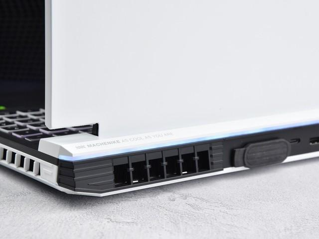 接口方面,机械师曙光16 Pro的接口分布在机身左右及后侧,其中左侧为USB 3.2 Type-A、3.5mm麦克风和3.5mm耳麦二合一;右侧为2×USB 3.2 Type-A和SD卡槽;后侧为水冷口、雷电4、HDMI2.1、RJ45(2.5Gbps)和电源接口。接口数量多,种类全,相当不错。