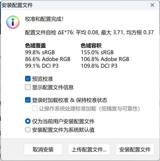 实测屏幕色域覆盖99.8% sRGB、86.6% Adobe RGB、99.1% DCI-P3,色域容积为155% sRGB、106.8% Adobe RGB、109.8% DCI-P3,最大亮度520尼特。从色域和亮度来看,屏幕素质还是不错的。特别是这一代旗舰游戏本,采用4K屏的产品并不多,这一点还是比较特别的。