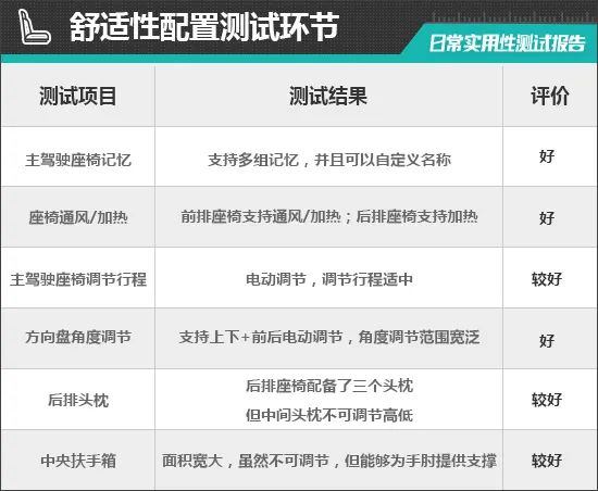 二、舒适性配置测试环节