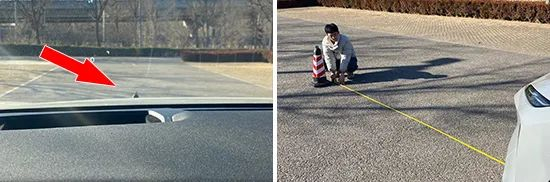 在测试前方视野环节,我们采用高70cm的桩桶作为参照物,随后调整车距,直至在主驾驶位可以看到桩桶上沿。经过测试,蔚来ES7桩桶与车头最终测得的数据为3.6m,在测试过的同级别车型中处于平均水平。