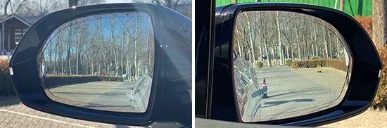蔚来ES7的左/右两侧后视镜均为双曲率镜面,实测成绩出色,左/右侧数据分别为30°和22°,在测试过的同级别车型中处于上游水平。