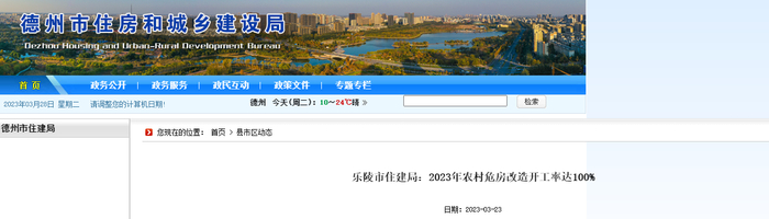 山东省乐陵市住建局:2023年农村危房改造开工率达100%