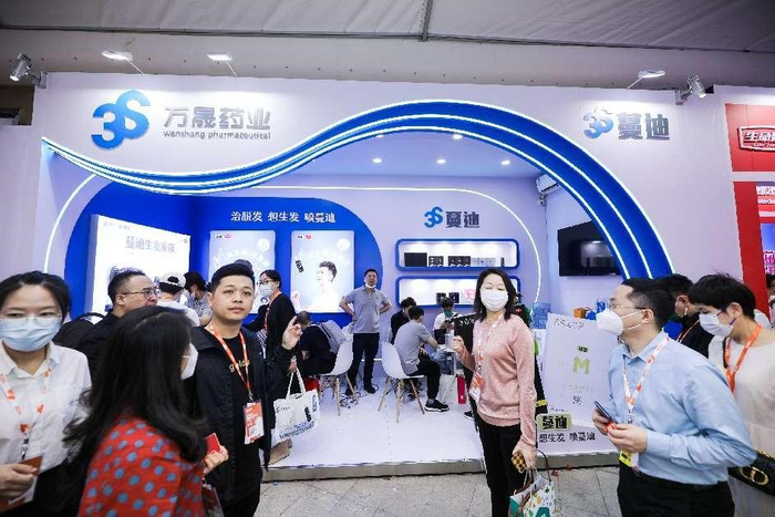 后疫情时代,健康需求井喷,防脱发、医疗器械、潮健康等新兴品类品牌成为展区“新宠”。此次参会的生发潮流产品——蔓迪米诺地尔酊斩获交易佳绩。万晟药业大区经理邱晓波说道,“新开拓300多家客户,现场成交数百万元,意向合作的更多。”邱晓波表示,蔓迪洽谈室及展厅人气非常旺,前两天几乎全天爆满,接待洽谈高峰时期,连自带的椅子都用上了,团队几十人常常应接不暇,准备的几千个蔓迪手提袋也被一扫而光。
