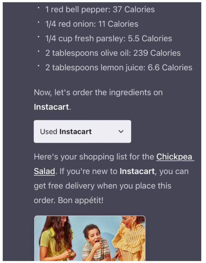 图表:ChatGPT调用Instacart插件进行线上购物