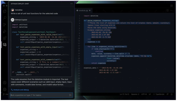 图表:GitHub Copilot X支持通过对话交互生成代码