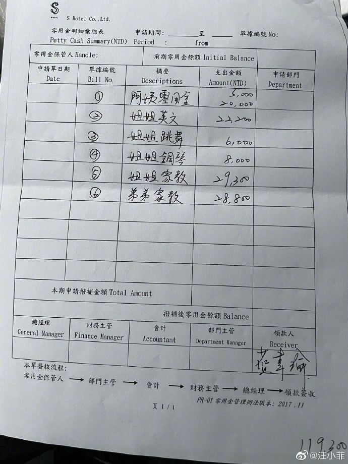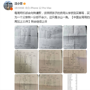 在汪小菲的个人微博上,他晒出九宫格账单并表示,“每周司机都会向我请款,该照顾孩子的费用从学费到买草莓,买文具到剪头发,作为一个父亲我一分都不会少。这只是冰山一角。我会继续上诉。”