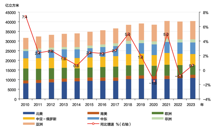 2.3 欧洲天然气需求量大幅下降,带动全球天然气需求量下降近1%