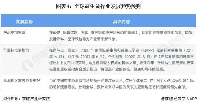 未来全球益生菌行业将呈现产品种类更加丰富、亚洲地区发展势头更好、行业标准更加规范三大趋势: