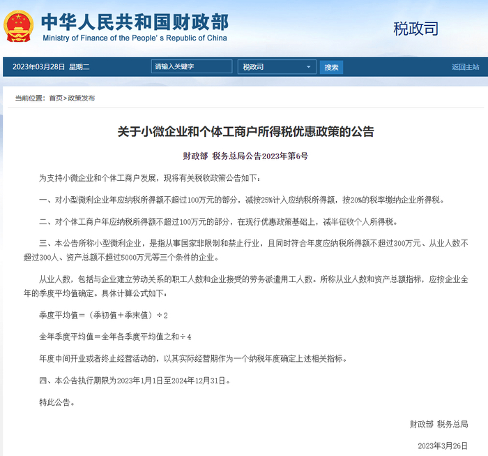 根据财政部联合税务总局发布的,关于小微企业和个体工商户所得税优惠政策的公告指出: