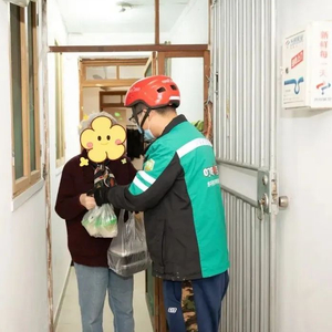上午11:30,叮咚买菜的外卖小哥吕文斌敲响了家住中山居民区“悬空老人”李奶奶的家门,将一份热乎乎的饭菜送到了她的手中。