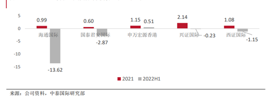 2022年上半年海通国际资产管理规模为515亿港元,管理费收入下降48%至1.41亿。国泰君安国际2022年上半年资产管理费收入同比骤降84%至0.1亿港元。兴证国际资产管理规模达73亿元,资产管理分部收入同比下降14%至0.12亿港元。