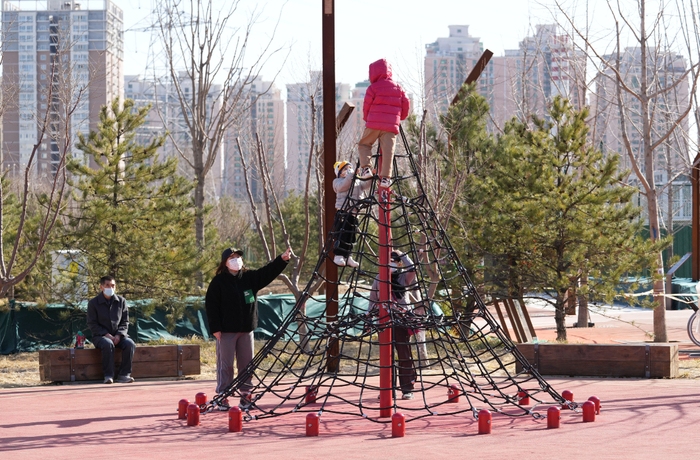 京张高铁在脚下15米深的地方无声驶过。地铁13号线在空中往来穿梭。相携的老人在公园里漫步,遛娃的爸妈陪孩子一起跳蹦床,还有时不时从跑步道上掠过的身影……人们在京张铁路遗址公园,享受当下的生活。