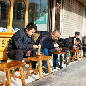 没座的食客干脆在店门口坐一排扎牛大,是兰州的一道风景。摄影/严肃