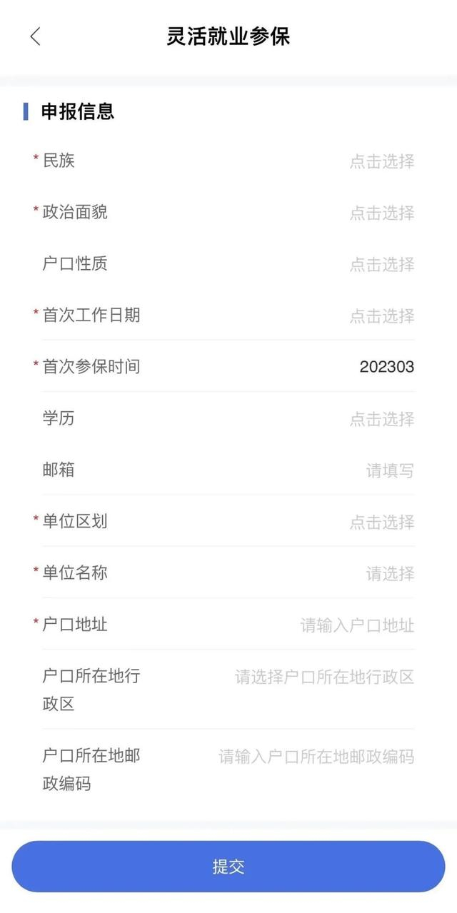 进入办理页面后填写信息提交,即可办理灵活就业参保。