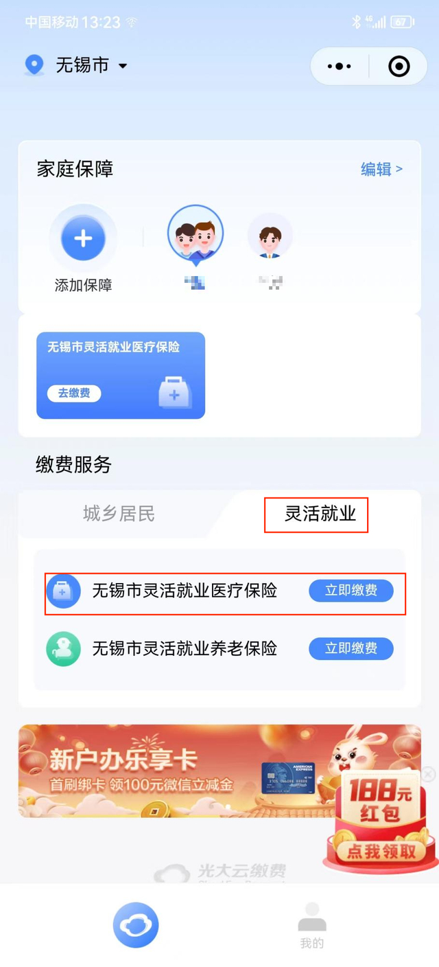 线下:无锡市户籍人员携带有效身份证件,非本市户籍人员携带居住证,港澳台居民携带港澳台居民居住证,可至户籍、居住地所在街道便民服务中心,或各区医保经办点办理。