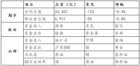 保证金流向以当日结算价以及期货交易所保证金比例为基准核算,该数据与期货市场真实保证金之间存在一定差异。