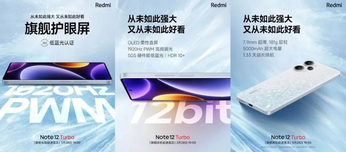 首批两台骁龙7+Gen2新机,1️⃣Redmi Note 12 Turbo:1080P直屏(边框更窄+取消塑料支架)、1920Hz PWM调光、侧边指纹,5000mAh、爆料67W充电;2️⃣真我GT Neo5SE则是1.5K直屏、2160Hz PWM调光、屏下指纹,5500mAh、100W充电。只看外观和配置,大家选谁?