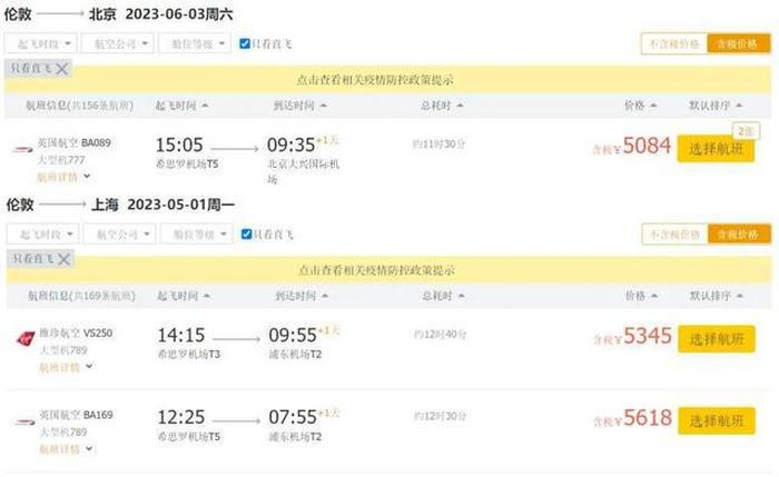 英国回国机票从两三万降至三四千