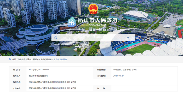 2023年2月江苏省昆山市重点食品品种抽检监测信息公布(第四期)