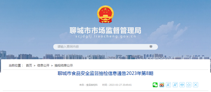 山东省聊城市市场监督管理局发布2023年第8期食品安全监督抽检信息
