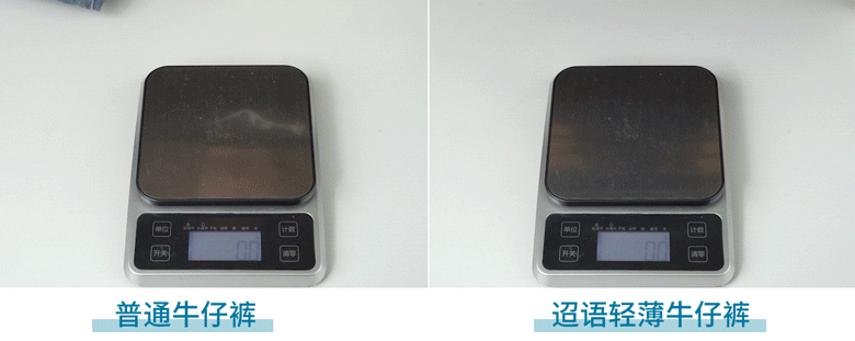 整条牛仔裤很轻很轻,几乎只有普通牛仔长裤的一半的重量。
