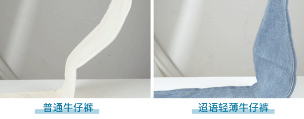 做出来的牛仔裤,触感不像牛仔布那般硬邦邦的,反而摸着很柔软,还有点滑溜溜的质感。