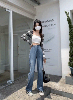 阔筒版型,视觉上向内收敛遮住胯宽和修饰腿型,显高显瘦无敌,感觉瘦了大半个胯进去~