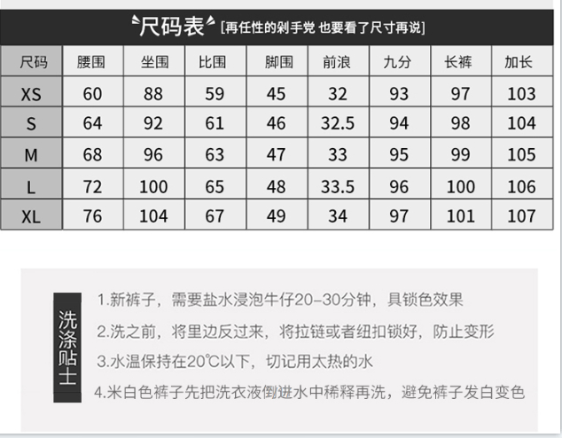 小个子可以选九分款,尺码我都给大家放这里了,对着选即可。