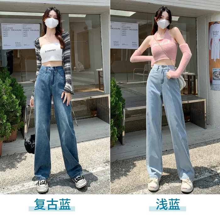 九分裤、长裤、加长裤三种长度!99元/条就能入手!共有浅蓝和复古蓝2色可选。