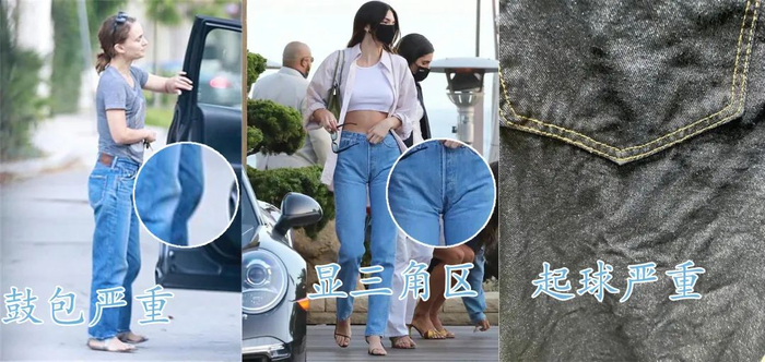 和普通牛仔裤对比,很明显看到胯宽被“缩”回去了,也不会凸出来一大块: