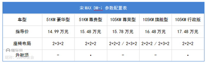 对于SUV车型和紧凑型MPV,懂哥一直以来的观点是:6座布局进出第三排方便,乘坐舒适性也要强于7座布局。当然,在15万价位,也有很多消费者对7座是硬需求。在比亚迪宋MAX DM-i上,直接提供了6座/7座两种选择。