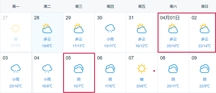 根据苏州气象台最新预报显示,近两周周末,我市天气以云系变化为主,最高气温22℃,最低气温13℃。大家驾车出行一定要提前留意天气变化,及时了解路况信息和安全提示,保持安全车距,不要酒后开车、超员载客,不要强行穿插、压实线变道。