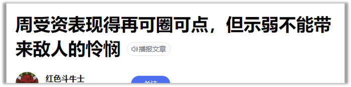 还有一篇传播很广的文章,表示周受资表现出来的就像是个逆来顺受的小绵羊,然后从他的种种动作表情出发,把他从里到外批判了一番。