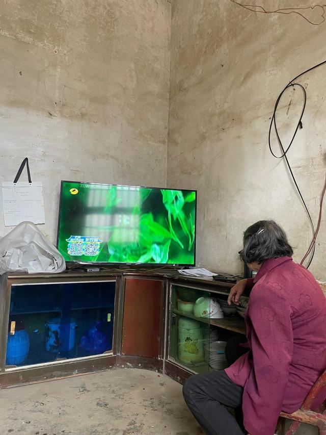 这个家里仅有三样东西是崭新的,电视机、冰箱、洗衣机。最惹眼的是50英寸大屏的电视机,画面炫彩、会动,有声响。