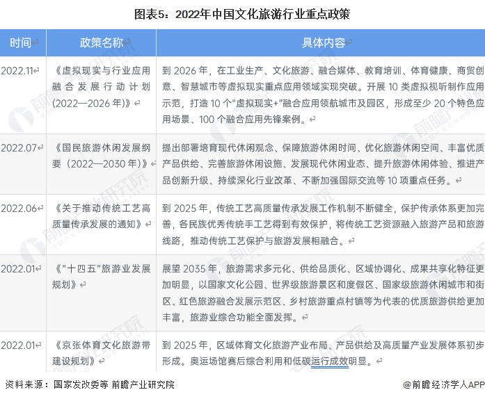 文化旅游在增加地方收入、建立文化自信等方面均可发挥重要作用。2022年,文旅部和国家有关部委连续下发数个关于促进文化和旅游消费及产业发展的意见或关联措施,对2025-2035年文化旅游行业进行了展望及相关目标规划。具体政策内容如下:
