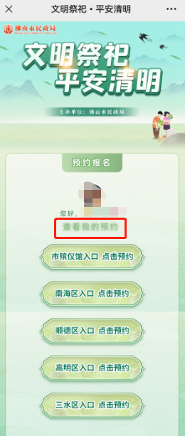 步骤三:进入预约系统,点击首页选择对应祭扫区域入口。