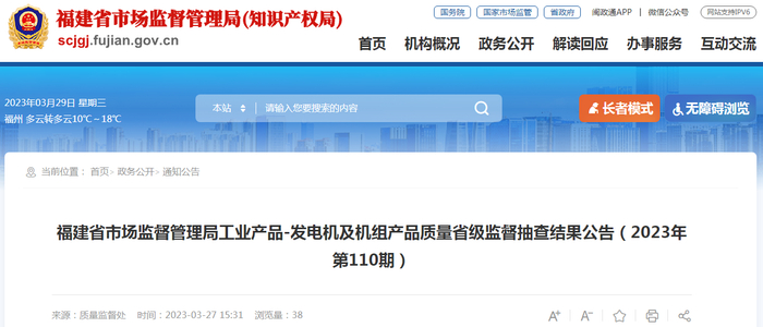福建省市场监管局公布发电机及机组产品质量省级监督抽查结果