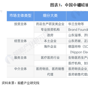 中国中硼硅玻璃行业市场主体主要分为投资主体、经营主体、服务主体和中介主体四大类,行业市场主体构成如下:
