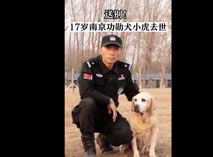送别!17岁南京功勋犬小虎去世,自2008年起随民警汪荣波征战南北