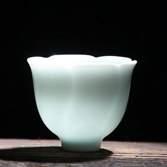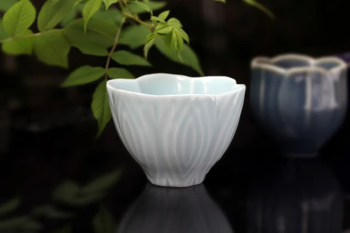 “前溪沧浪映,通波澄渌清。”茶盏设计以莲瓣入器型,釉面光洁,持握舒适。放置于桌面,显得安静典雅。