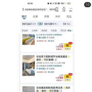 29日下午,记者在预定酒店的APP上发现,发帖者晒出的洛阳优佳精品酒店(宝龙广场店)有多种房型,以面积50-55平米的“百寸观影房”为例,如果是3月29日办理入住的话,每晚的价格为97元。如果把入住时间改成今年5月1日,同一房型的价格就变成了惊人的1783元每晚。这样夸张的涨幅,让很多网友感叹离谱,“很一般的小酒店而已,也没有什么特殊之处,居然这么贵!”