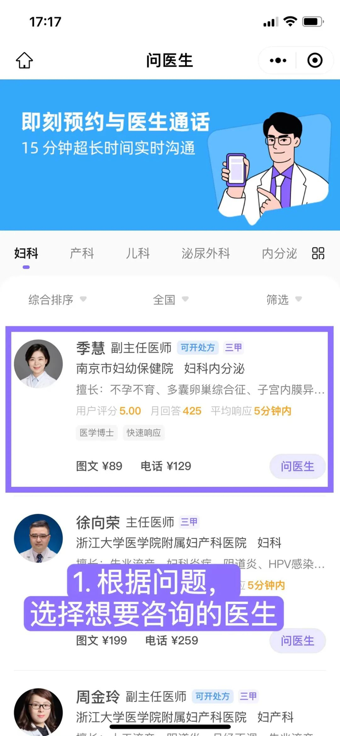 1. 根据病情,选择想要咨询的医生