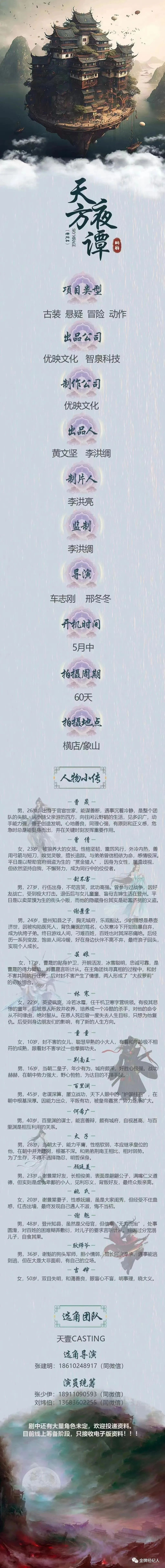 今日组讯|《出马仙异闻录》、古装悬疑剧《天方夜谭》等